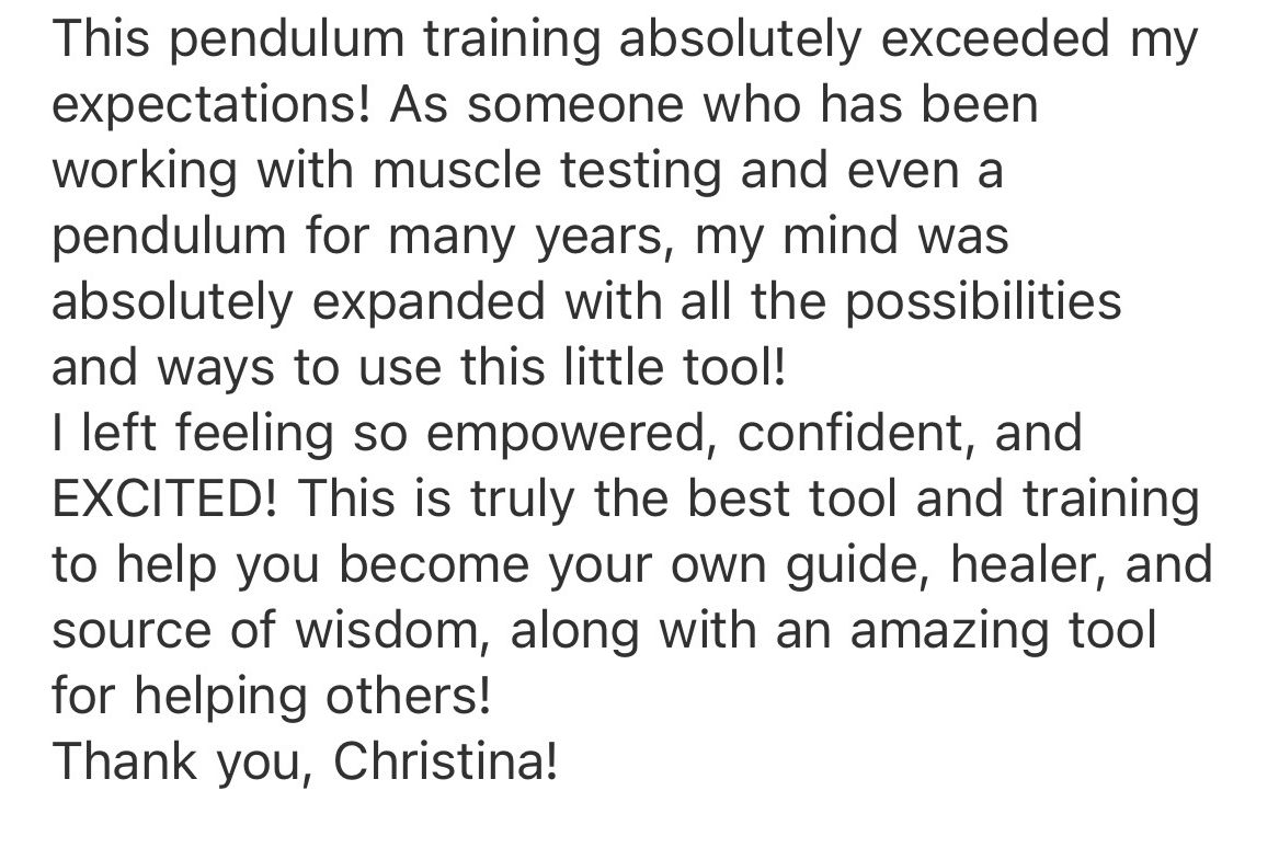 - Your own pendulum shipped to you – included with your purchase so you can start your practice right away.
